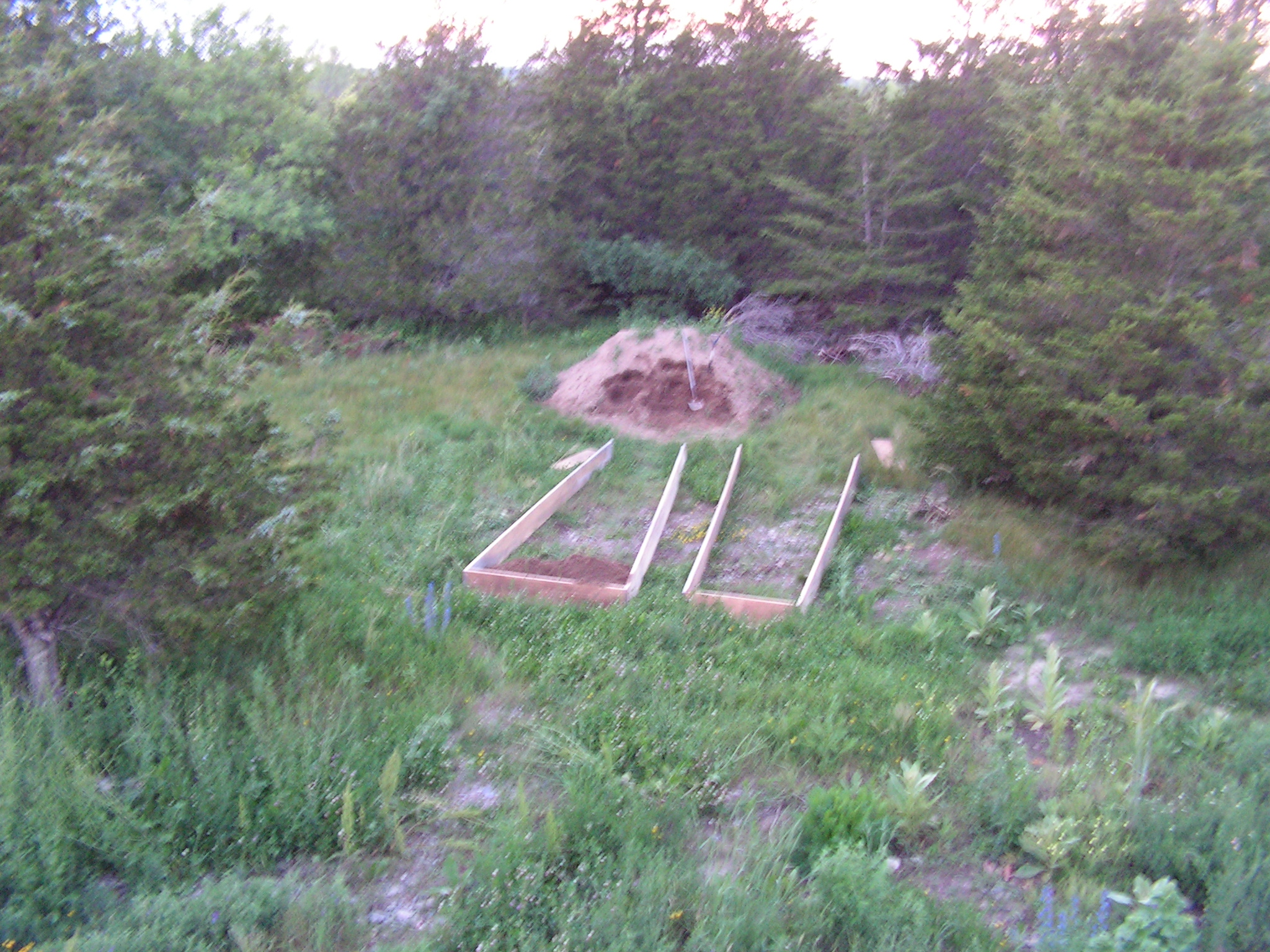 It may be a tad ambitious, but it seemed like a good idea at the time. I am building a raised vegetable garden using the leftovers from the house construction. The pile of earth was delivered a few months ago, during which time weeds have taken root. It’s sandy loam and comes from a forest not too far away. The grizzled old guy who owns the company that takes care of finding and delivering the soil apologized for not screening it, but said that screening would be an extra expense. We agreed the soil is in excellent condition with very few rocks.