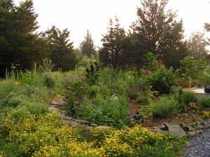 There is something about getting up early, putting on the kettle, grinding the coffee beans and then paying a visit to the plants outside the front door. It doesn’t always happen that way, but it should. The land is flat and I can see the sun rise orange from the bathroom window. These days the mornings are still and warm. I check the bird feeders and the birdbath. Sometimes the garden has to go neglected–has to wait until later for a good soaking or weeding. But more often than not it gets my attention, these days–deadlines must be extended, submissions delayed. The garden isn’t as much demanding as it demands, if that makes sense.